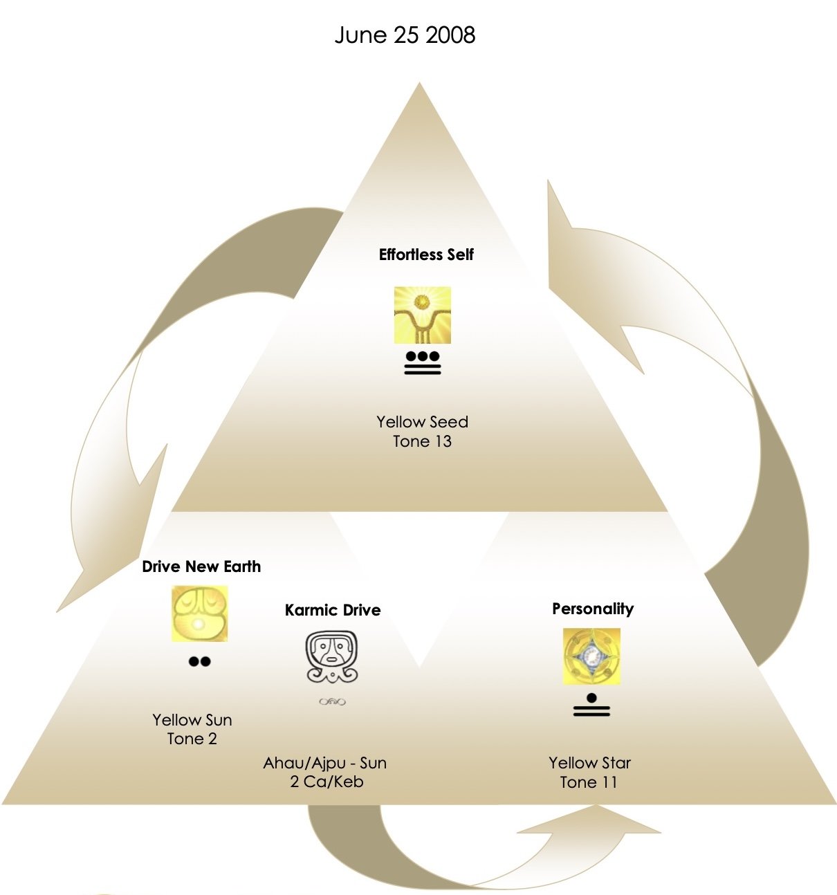 The triangle contains the core qualities and creative power (seals and tones) of your birth day through three counts, each representing a different aspect of yourself: